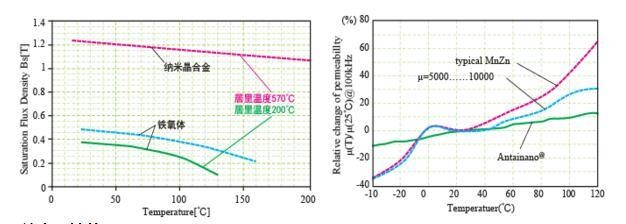| Miezul de ferită nanocristalină pentru compararea performanței componentă DC | Comparația dintre intervalul de temperatură și stabilitatea temperaturii miezului nanocristalin și de ferită |